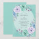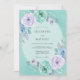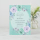 En lugn turkos bakgrund omfamnar ett känsligt arrangemang av lavendel- och blåblommor. Denna romantiska design inger en känsla av mjuk elegans, perfekt för ett sofistikerat tillfälle. Den måleriska stilen tillför en touch av konstnärlig charm.