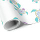 This gift wrap features a charming pattern of swimming turtles in soft, pastel hues that evoke a sense of calm and whimsy. The turtles glide gracefully across the paper, their shells adorned with delicate patterns in shades of mint green, raspberry, pale lavender, and baby blue. Set against a light, airy background, the overall design feels lighthearted.