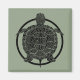 En karta-sköldpadda på en cirkel teckning. Bakgrunden till färg visas genom det vita utformningsutrymmet. Inspirerad av metall konsskulptur. Svart på grönt.