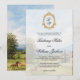 This wedding theme features a hand-painted watercolor countryside scene with sunlit fields, hills and horses. Perfect for destination weddings and vineyard celebrations. A portrait of European countryside landscape. This invitation can be easily edited with your wedding details.