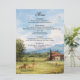 This wedding theme features a hand-painted watercolor countryside scene with sunlit fields, hills and horses. Perfect for destination weddings and vineyard celebrations. A portrait of European countryside landscape. This product can be easily edited with your wedding details.