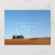Fotomarkörkort av en liten grupp cypresser i en liten skog mellan de böljande karga kullarna på hösten i Val d'Orcia, Toscana, Italien med en genomskinlig ruta och texten 'Toscana, Italien'.