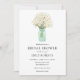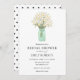 En bukett med tusenskönor i en murarburk för att fira den blivande bruden. Vacker inbjudan perfekt för alla miljöer för en bröllopsfest - utomhus, bondgård, bakgård, trädgård. Inbjudan med en vacker blomsterbukett med svarta prickar på baksidan. Anpassa med din information.