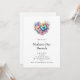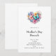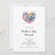 En inbjudan till morsdagsbrunch med en vacker illustration. En hjärtformad bukett blommor i pastellblå, grön, lila och gul. Med en vacker blå fjäril som svävar framför.