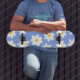 Förgyll dina skateboard-äventyr med vårt tusenskönemönstrade skateboarddäck, med en charmig illustration av ömtåliga tusenskönor. Perfekt för skateboardåkare i alla åldrar, detta unika och dekorativa skateboard ger en touch av blomsterprakt till din åktur. Idealiskt för barn, tonåringar och vuxna, det gör en förtjusande födelsedagspresent, en iögonfallande present för alla tillfällen eller en vacker dekoration på din vägg.