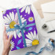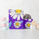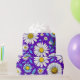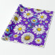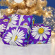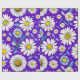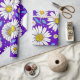 Ett färgrikt sömlöst mönster med tusenskönor med gula centra, blå blad och en livfull lila bakgrund. Perfekt för vårtema, textildesign och glada digitala eller tryckta hantverk.