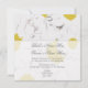 En enkel men sofistikerad bröllopsinbjudan med en bakgrundsillustration av tusenskönor på framsidan och baksidan. Anpassa den grå texten på framsidan över den genomskinliga sektionen. Formuleringen av inbjudan är från brud och brudgum.
