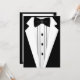 I den här Contemporaryn visas en svart Tuxedo med svart bläddringsfack. Perfekt för Bröllop, födelsedagar och finansiärer. Lägg till personligens anpassningsbar längst bak (eller längst fram) i inbjudan genom att klicka på "Anpassa" och följa instruktionerna för använda! Tips! När du lägger till text håller du dig inom den röda prickade linjerna.