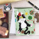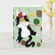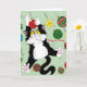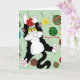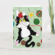 Svart och vit tuxedo-katt som faller med julprydnadsföremål i en grönt. Håll ut den här Julhelgen.