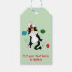 Svart och vit tuxedo-katt som faller med julprydnadsföremål i en grönt. Håll ut den här Julhelgen.
