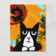 TUXEDO CAT ART & SUNFLOWER PANDA KATTUNGE POSTCARD VYKORT