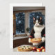 Festive tuxedo cat-sharing med helgdag glädje, som klämmer en julfest paj i ett vackert säsong illustration