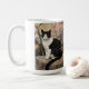 Vattenfärgning illustration av svart och vit katt sitta på sten i trädgården. Anpassa mugg med ditt namn!