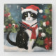 Tuxedo Cat i Snö jul Fyrkantig Klocka