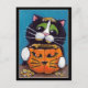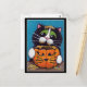 Tuxedo Cat med Halloween Pumpkin Vykort