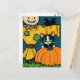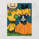 Tuxedo Cat med Pumpkin och Fågelskrämma Illustrati Vykort