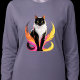 This cat portrait is special due to its bold, high-contrast visual style. The classic black and white tuxedo cat is given an energetic Pop Art twist by the vibrant, neon-colored feathers that flow dynamically around its body. The composition is powerful and modern, making it an eye-catching piece perfect for modern wall art, statement apparel, or unique gifts for cat lovers.
