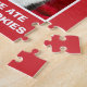 Den här söta tuxedo-julmunstycket har ett foto av en tuxedo-katt med tunga i en julbutik. Under fotot är ord, "någon åt tomtens kakor". Det här är ett underbart pussel för kattälskaren. Copyright peachesthetuxedocat