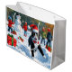En lekfull Tuxedo Cat springa genom snövinteckan med en frisk röd julhatt. Denna charmerande utformning belyser rasens särskilda svarta och vita jacka, nyfikna karaktär och livlig anda samtidigt som den fångar julhelgens värme och glädje. En härlig vinter-fullt av festlig cheer.