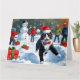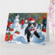 Tuxedo Cat Runin i Snö med julklapp Kort