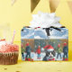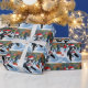 Tuxedo Cat Runin i Snö med julklapp Presentpapper
