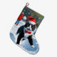 Tuxedo Cat Runin i Snö med julklapp Stor Julstrumpa