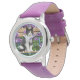 Tuxedo cat sitta på en trädgårdsstol med blommor armbandsur