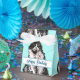 Tuxedo Cat Svart Vitt Katt Födelsedag Turkos Kakburk. En strålande produkt skapad från mina originalmålningar i akvarell.