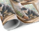 En grinig svart och vit katt knackar energiskt över en krukplanta på en charmig trä bord, medan varm solljus väller in genom fönstret, vilket förbättrar den härliga scenen