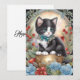 Art Nouveau-stil julkort med söt tuxedo katt som poserar på en vas omgiven av blomsterliknande vinterdekor i rött, grönt och blått. "Glada Högtider" på baksidan kan anpassas eller lämnas tom för ett handskrivet meddelande. Perfekt för kattälskare. Besök min butik för mer tuxedo katt-konst!