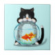 Tuxedo-katt med fiskpanel kakelplatta