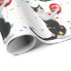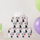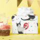 Svart och vit katt som håller en röd födelsedagskalender i färglösa party konetti.