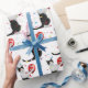 Tuxedo-katt med rödfödelsedagsbatong presentpapper