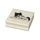 Cute black and white tuxedo kitten sitta i en blå hund mot bakgrund av lila.