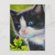 Tuxedo Kitten & Ladybug Watercolor Art Vykort