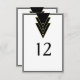 Ett elegant bordskort med enkel elegans, denna design har ett Art Deco-inspirerat geometriskt mönster av svarta upprepade trianglar med en guldbård och simulerade guldnitar. Skriv in era bordstal genom att ersätta de exempelnummer som visas på framsidan och baksidan av detta kort. Ni kan lägga till ytterligare text om ni önskar inkludera namn eller annan information om er evenemang. Detta kort finns i flera andra storlekar för att passa era behov.