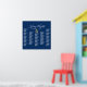 Nautiskt ankardiagram poster i marint blått för ett stort mottagningsområde. Kvadratisk form har olika storlekar med avsnitt som du kan lägga till gästernas namn i alfabetisk ordning eller efter bordsnummer. Vitt skript överst för första namnen av bruden och trippen i modernt handskrivet teckensnitt. Resten är vit utskriven text med datum för händelsen under namn. De två ankarpunkterna i guld ligger under detta och bord-listorna är placerade i lodräna. Avsnitten håller upp till 22 bord eller tar bort avsnitt efter dina behov.