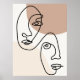 Två Ansikte Brown Abstrakt Shape Line Art Version Poster