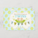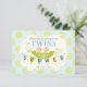 Två gulliga tvilling- pojkar i en ärtapod med buntingbanret och polka-pricker tryckbakgrund tackar dig att card.