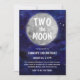 Den här marinblått och silver andra födelsedagsinbjudan är perfekt för ett rymdtemat party. I inbjudan finns frasen "Två Måne" skriven över ett stort silvint måne. En mörk marin blå galaxbakgrund är fylld med vita stjärnor och belysta moln. Lägg till ditt barns namn och födelsedagsuppgifter under måne.