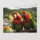 Gå nära med ett par vackra rödhalsade Amazonasparroter i det här vikiga Dominikanska vykortet. Fångst av exotiska tropiska fåglar i nära detalj, deras vackra nacke kurva mot varandra när de visningar sin namnteckning grönt och rött plumage. Perfekt för papegoja älskare och naturentusiaster som söker ett unikt, närbeläget fotografi av vilda djur.
