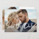 Detta fantasifulla och eleganta kort för att spara datumet innehåller två av dina personliga favoritbilder, med trendig vit handskriven stil. En enkel och modern look som passar perfekt med din stil!