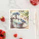 Bluebirds med vattenfärg är genomträngda runt en gammaldags vatten-kran, med en fågel som använder kranen för att droppa vatten in i en trähink