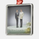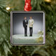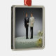 Två brudgumfigurines överst av bröllopstårta julgransprydnad metall