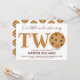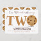 En chokladkaka i chip 2:a födelsedag till småbarn. Inbjudan är vit och brun med "två" ord i stort brev med en illustration av kakan som sista brev i ord. Det är underbart för en cookie eller ett mjölk & cookies-födelsedagstema. Anpassa bara inbjudan, lägg till den i din vagn och grattis på födelsedagen till ditt underbara småbarn! Två cookie 2:a födelsedagsinbjudan Sweetsham Food Art | ©Melissa Patton - Artist/Illustrator