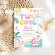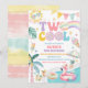Fira ditt barns speciella dag med denna livfulla "Two Cool" poolparty-födelsedagsinbjudan! Med lekfulla sommarillustrationer som regnbågar, flamingoflottörer, glassar, popsicles och tropiska palmlöven sätter denna design den perfekta tonen för en rolig fest. Klara färger och festliga detaljer gör den idealisk för en andra födelsedagsfest vid poolen. Anpassa med dina evenemangsuppgifter för att skapa en unik, iögonfallande inbjudan som gästerna kommer att älska. Perfekt för sommarfödelsedagar, tropiska teman och poolside-samlingar.