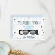 Det här fina tack du har på kortet: solglasögon och färgstarka konfektyrer.