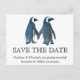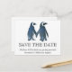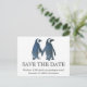 Två Cute Penguins | Romantic Bröllop spara datum Meddelande Vykort