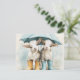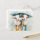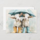 Två baby-getter har sina regnstövlar på och står under en blå paraplyfantasi - vattenfärgskonst
