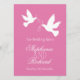 Dubbla-sidig, enkel två vita duvor med två rosa-rosett band bröllopsmiddagsmeny. Designad av Sarah Trett.